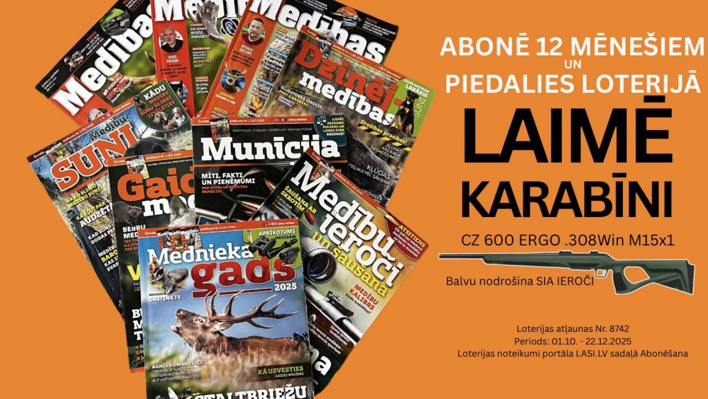 Abonēšana var būt arī ceļš pie jauna ieroča, aksesuāra vai kāda īpaša pārsteiguma. Lasot žurnālu Medības, tu iegūsti ne tikai zināšanas, bet arī iespēju laimēt!