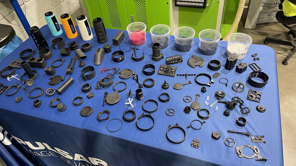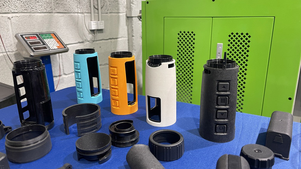 Varam droši teikt, ka ražošana pie mums Latvijā ir daudznozaru. Proti, uz vietas saražotas tiek ne vien vajadzīgās plastmasas un gumijas, bet arī metāla detaļas, notiek ierīču komplektēšana un iepakošana. Tiesa, kopumā Latvijā ražošana vairāk orientējas uz tēmēkļu un monokulāru izgatavošanu. Pašā ekskursijas sākumā nonākam vietā, kur top plastmasas un gumijas detaļas – korpusi, vāciņi, aizdares, siksniņu sprādzes un visi citi mazie sīkumiņi, kas, lietojot ierīci, veic šķietami nemanāmu, bet tomēr būtisku darbu. Kad ienākam ražošanas telpā, tur top detaļas, kas atgādina aizsargvāciņa gredzenu. Darbinieks tos pa vienam ņem ārā no iekārtas, lampas gaismā vizuāli pārbauda formu un kaudzītēs krāmē kastē. Lai šīs detaļas saražotu, nepieciešamas īpašas liešanas formas. Pāvels rāda uz plauktu, kur tās ir sakrautas vienkopus lielā daudzumā, un atklāj, ka šīs formas vajadzības gadījumā var arī modificēt – tas ražošanas procesu krietni atvieglo. Jā, arī modificēšana un formu remonts, formu detaļu un specifisku instrumentu izgatavošana notiek tepat rūpnīcā, līdz ar to tā šajā ziņā spēj sevi uzturēt un darboties patstāvīgi.