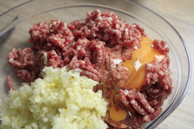 Vispirms gatavojat pildījumu. Gaļu kopā ar speķi samaļ gaļasmašīnā. Ja vēlaties vienmērīgāku un smalkāku tekstūru, gaļas masu var samalt vēlreiz. Tad pievienojiet smalki sagrieztus sīpolus, ķiplokus, iemaisiet olu un pielejiet aptuveni trešdaļu glāzes gaļas buljona, lai pildījums būtu sulīgāks. Pievienojiet sāli, piparus un iecienītās garšvielas pēc garšas.