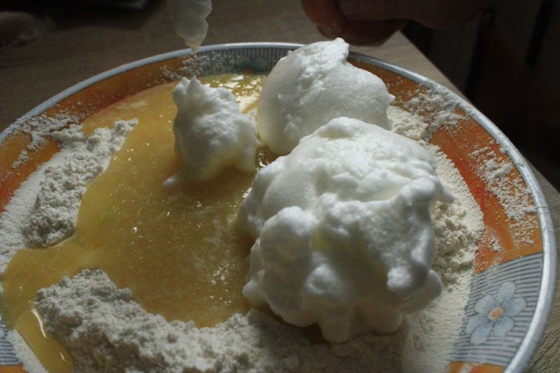 Mīklai vispirms uz smalkās rīves sarīvējiet sīpolu, līdz izveidojas sulīga masa. Atsevišķi sakuliet olu baltumus un dzeltenumus, pievienojiet sāli, pielejiet pusi glāzes ūdens un iemaisiet sarīvēto sīpolu. Citā traukā izsijājiet miltus, vidū izveidojiet iedobi un ielejiet sagatavoto maisījumu kopā ar sakultajiem olu baltumiem. Mīklu kārtīgi izmīciet, apkaisiet ar miltiem un atstājiet 15 minūtes uzbriest.