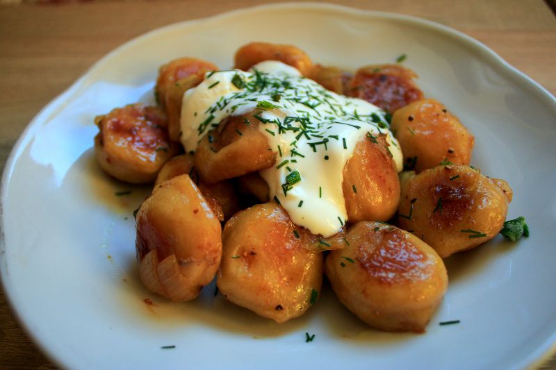 Internetā reizēm var redzēt ceptus pelmeņus – tik zeltainus un apetīti rosinošus, it kā tie būtu perfekti vienmērīgi apcepti sviestā. Taču, lai arī kā centos, man šo toni neizdevās panākt, līdz izlasīju citu recepti – tajā ieteikts cepšanas laikā pievienot vistas buljonu.