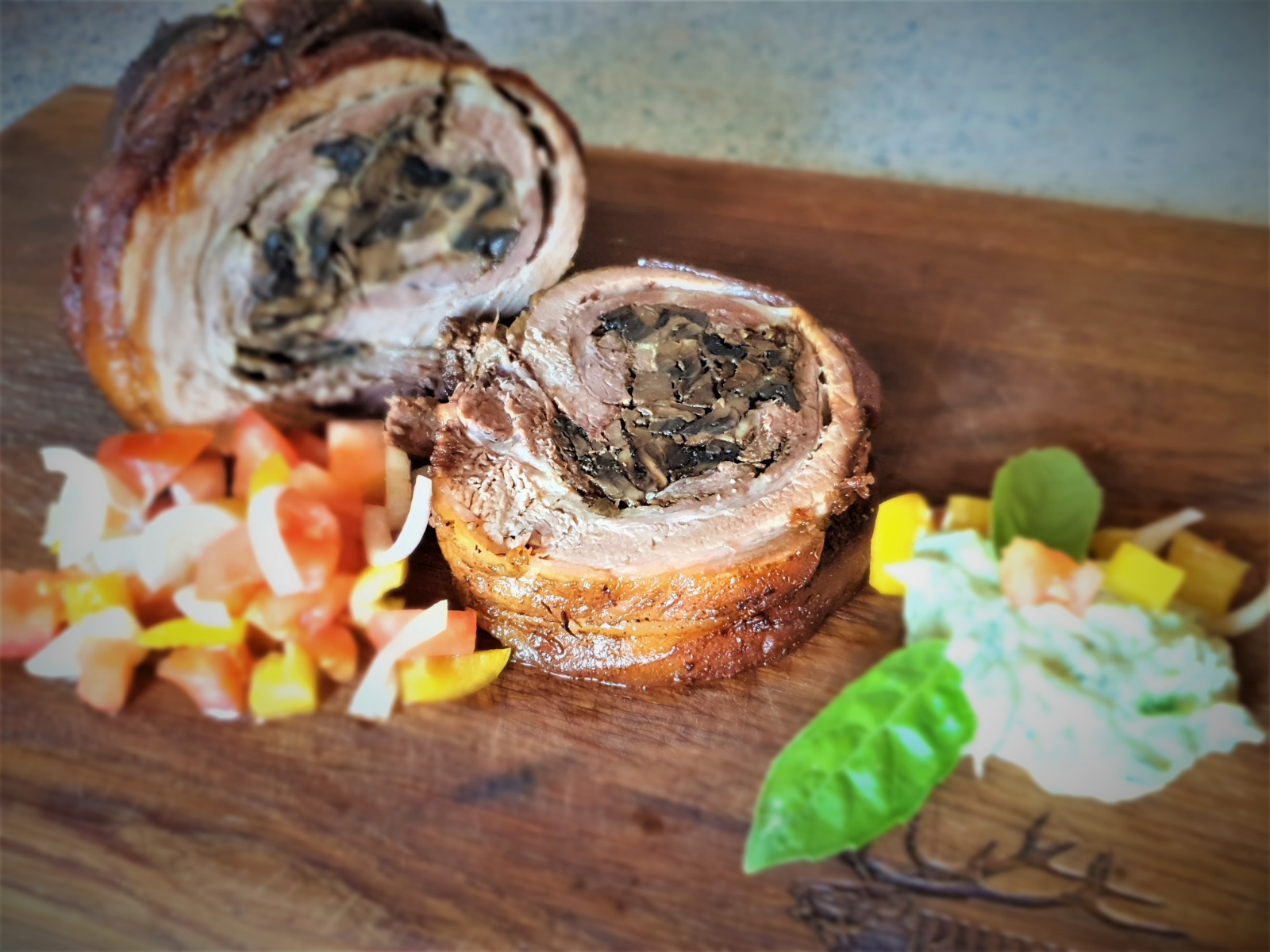 Pārbaudīta un 100% droša mežacūkas gaļa! Kas var būt labāks par to? Protams, stirnas, aļņa, brieža, zaķa vai pīles gaļa arī ir garda, bet mežacūka… Mmmm! Un ribiņas ir vislabākās. Parasti tās sautē un šmorē, grillē, cep cepeškrāsnī veselā veidā vai sagrieztas, bet man jau ļoti sen gribējās paņemt veselu mežacūkas sānu un uztaisīt ruleti. Skaties, kā man tas izdevās!