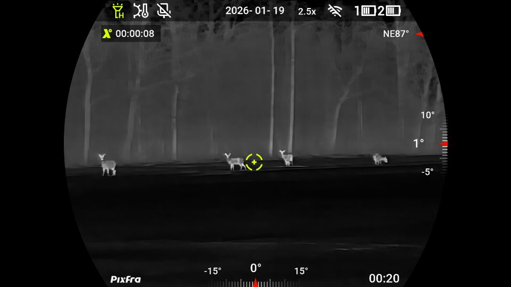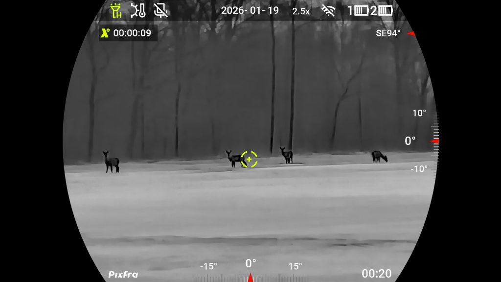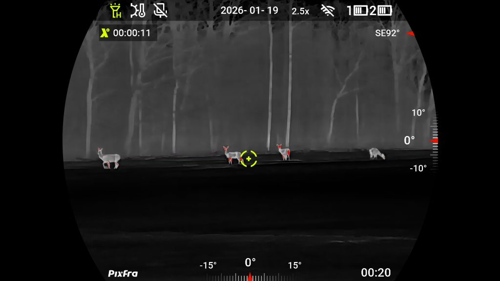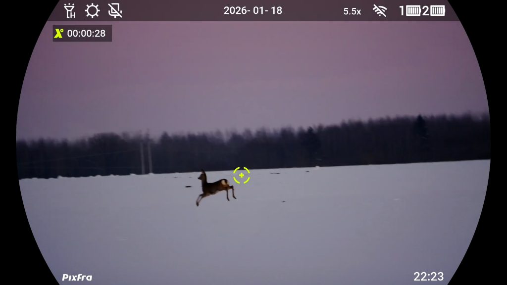 Medības bez laba binokļa iedomāties ir pagrūti. Taču pat vislabākais binoklis nepalīdz, kad saule ir norietējusi un mēness vēl nav uzlēcis. Tāpat saskatīt lapsu rudenīgā pļavā vai stirnāzi ziedošā pļavā nav tik vienkārši. Protams, ja vien nav pieejams multispektrālais binoklis, kurā apvienotas digitālās un termālās tehnoloģijas. Nu tāds ir arī PIXFRA piedāvājumā. Ierīcei ir arī lāzera tālmērs.