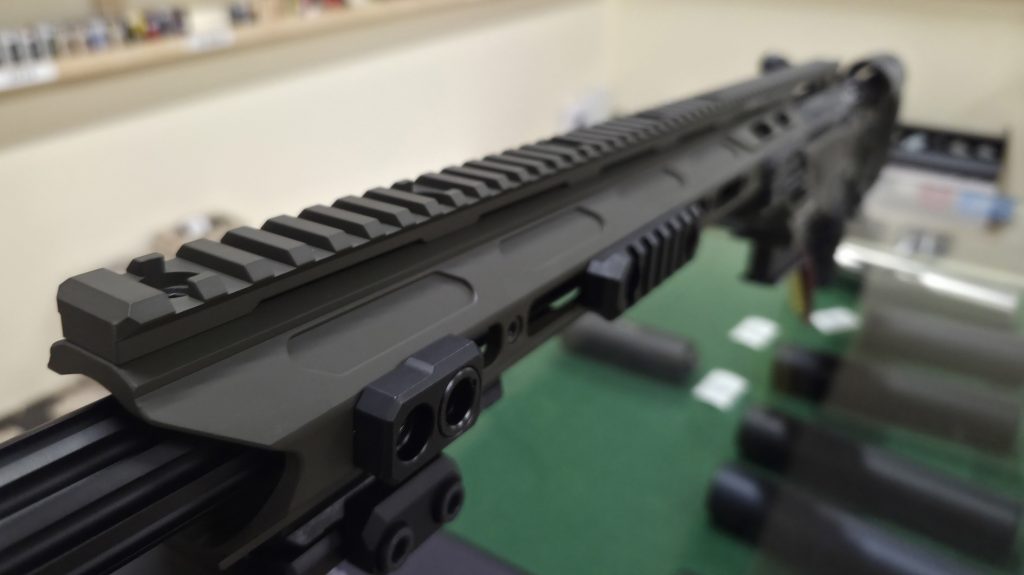 Standartā jau ir iekļautas vairākas Picatinny stiprinājuma sliedes. Ieroča rokturis ir ar gumijotu pārklājumu, lai to varētu ērtāk satvert. Tāpat ir palielināta izmēra sprūda mēlītes aizsargskava un aptveres atbrīvošanas svira, lai darbības ērtāk būtu veikt arī ar cimdiem,” turpina Arvids Baumanis.