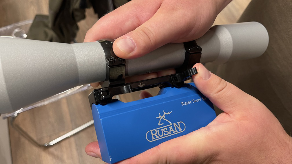 Rusan – pilnā nosaukumā Rusan Mikron D.O.O. – ir Horvātijas uzņēmums, kas specializējas dažādu tēmēkļu stiprinājumu, montāžas sliežu un ieroču detaļu ražošanā. Tas darbību sāka 1983. gadā kā neliels ģimenes metālapstrādes uzņēmums, bet nu ir attīstījies un iekarojis savu vietu Eiropas un arī pasaules tirgū. Termālo vai digitālo uzliku īpašniekiem ražotājs piedāvā viendaļīgas un divdaļīgas modulārās pārejas. Vienkāršos vārdos runājot, divdaļīgajai pārejai šaurākais jeb reducējošais gredzens jāpieskrūvē pie uzlikas, bet platākais – ar sviru piestiprināms pie tēmēkļa korpusa priekšējās daļas. Līdzko tas izdarīts, neko vairs aiztikt nevajag, abas pārejas daļas ir nofiksētas vietā un tur var arī palikt. Kad uzlika jāpievieno tēmēklim, abas pārejas daļas vienkārši ar īsu pagriezienu un knikšķi beigās savieno kopā un lieta darīta! Labā ziņa ir tā, ka pārejas daļa, kas atrodas uz tēmēkļa, būtiski netraucē lūkoties tam cauri, līdz ar to tā nebūs jāņem nost, arī medījot dienā. Nosacīti sliktā – katra pārejas daļa gan ir jāiegādājas atsevišķi. Savukārt viendaļīgajai pārejai ir jau rūpnieciski noteikts vītnes izmērs, kas jāizvēlas atbilstoši uzlikas vītnei un arī optiskā tēmēkļa lēcas ārējam diametram. Abām šīm sistēmām ir viena kopīga iezīme – nav nepieciešamas starplikas. Ražotājs norāda, ka katrs stiprinājums pēc uzražošanas tiek turpat rūpnīcā pārbaudīts, lai pārliecinātos par tā kvalitāti un veiktspēju.