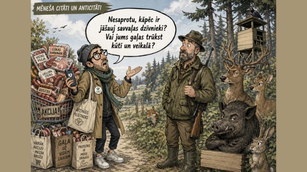 ● Anonīms: “Stiprāko briedi izbadējies divkājainis nošāva, dodot iespēju laist pasaulē pēcnācējus vājākajiem briežiem. Negatīvā selekcija. Nesaprotu, kāpēc ir jāšauj savvaļas dzīvnieki? Vai jums gaļas trūkst kūtī un veikalā?”