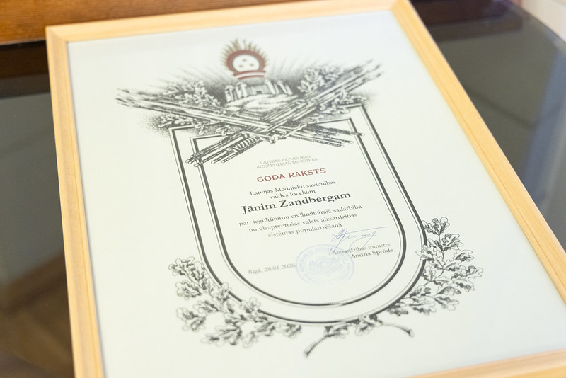 Trešdien, 28. janvārī, aizsardzības ministrs Andris Sprūds, tiekoties ar Latvijas Mednieku savienības valdes locekli Jāni Zandbergu, parakstīja plānu par kopīgi īstenojamiem pasākumiem 2026. gadā.