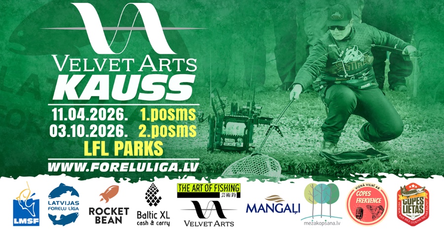 Latvijas Foreļu līga aicina reģistrēties 2026. gada Reitinga līgas otrajām sacensībām Velvet Arts kausa pirmajam posmam. Sacensības norisināsies 11. aprīlī Latvijas Foreļu līgas parkā. Sacensību galvenais atbalstītājs ir daudziem zināmais vācu veikals The Art of Fishing, kas specializējas kvalitatīvu japāņu zīmolu pārstāvniecībā un tirdzniecībā. Viens no šiem zīmoliem ir Velvet Arts, kas iekarojis trout area pasauli ar inovatīvām idejām, ko realizējis slavenais japāņu sportists Yudai Ito.