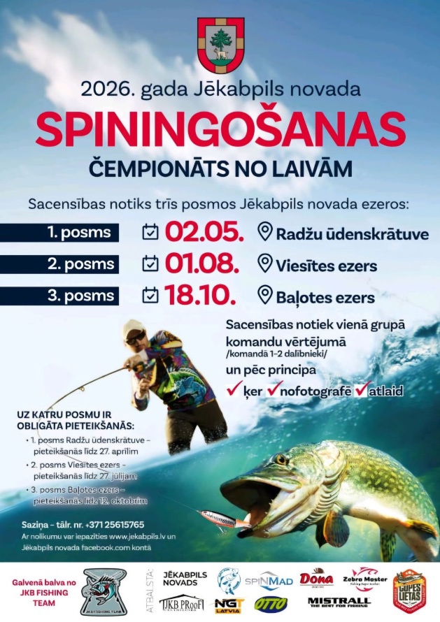 Lai popularizētu makšķerēšanu kā aktīva un veselīga dzīvesveida sastāvdaļu, vaļasprieku, atpūtu un sportu, šogad norisināsies Jēkabpils novada spiningošanas čempionāts no laivām. To organizē Jēkabpils novada Attīstības pārvalde. Sacensības norisināsies trīs posmos Jēkabpils novada esošajos ezeros.