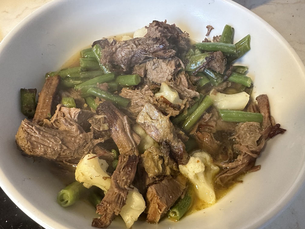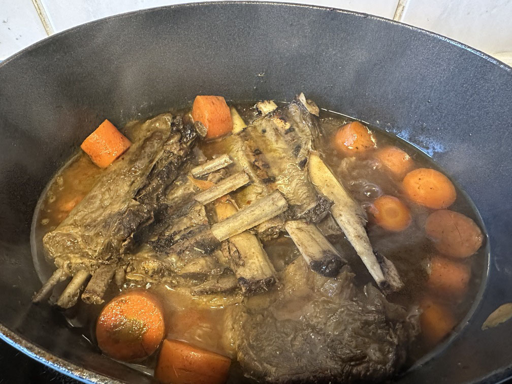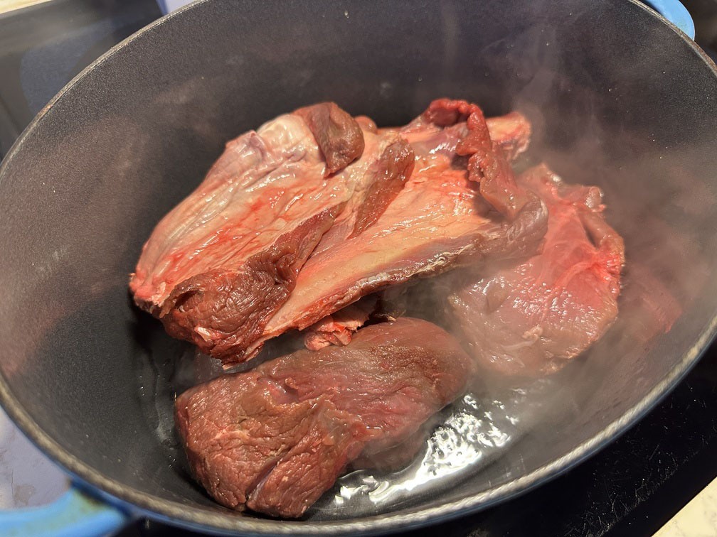 No šķietami nekāda ribu gabala sanāk silts, sātīgs un dziļas garšas ēdiens. Šoreiz šis daudzums pietika diviem cilvēkiem trim dienām – tieši tāds ēdiens, kas kļūst vēl labāks nākamajā dienā. Medījuma virtuve nav tikai steiki un medaljoni. Bieži tieši lēni gatavotie, kaulainie gabali ir tie, kas iemāca pacietību – un atalgo ar īstu garšu.