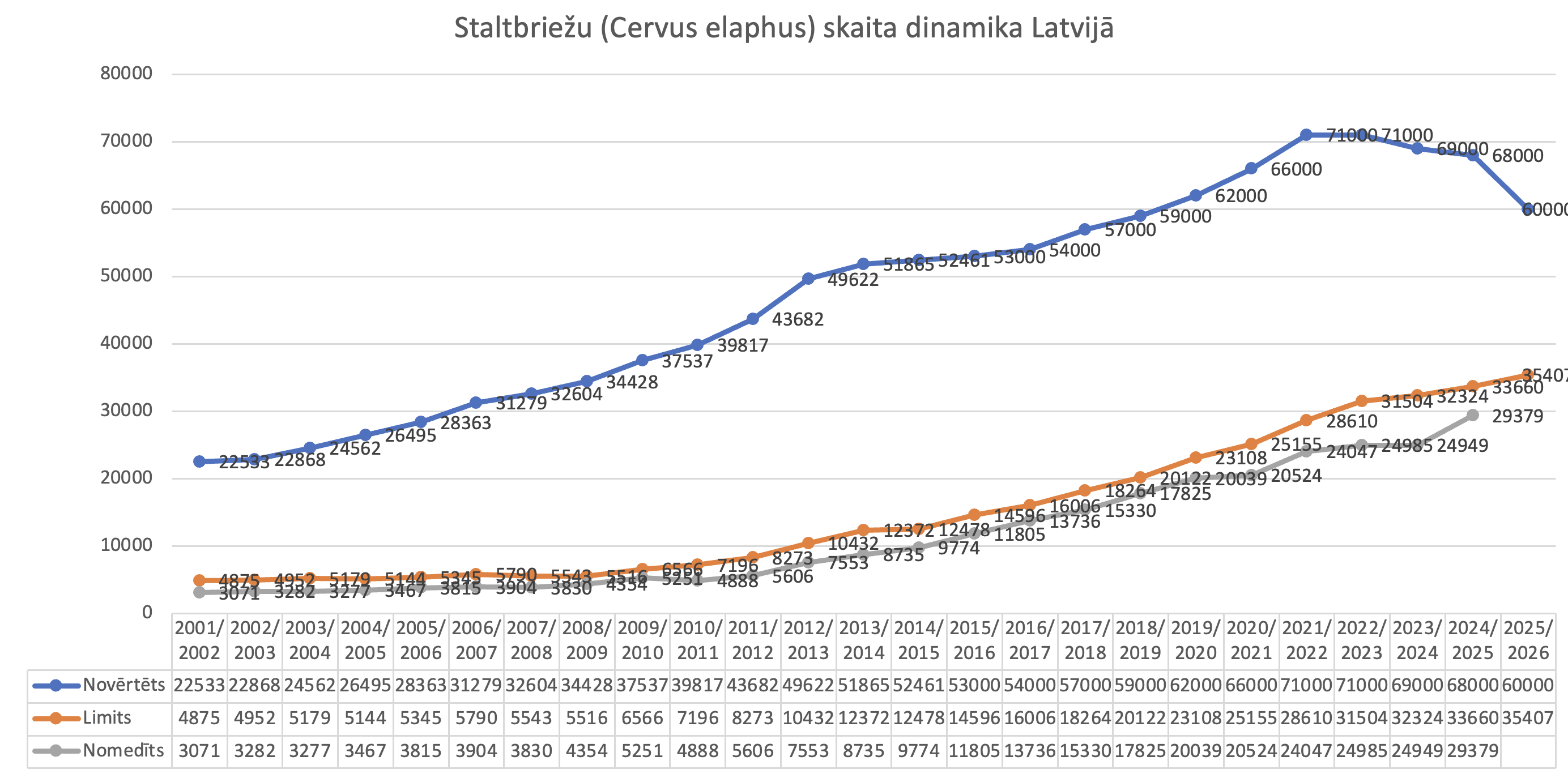 – staltbriežu skaitu strauji samazina – tas ir apzināts politisks uzstādījums, kas saistīts ar postījumu mazināšanu mežsaimniecībā un lauksaimniecībā;