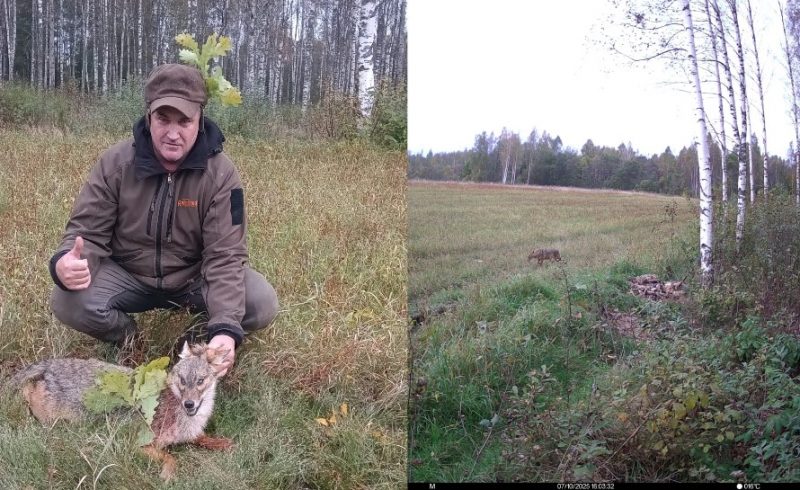 Latvijā, Balvu novadā nule nomedīts zeltainais šakālis. Tas nozīmē, ka šī jaunā suga jau izpletusies praktiski visā Latvijas teritorijā un uz zemes ligzdojošos putnus, no kuriem daļa ir īpaši aizsargājami, kā arī sīkos zīdītājus apdraud vēl viens spēcīgs, Latvijai neraksturīgs plēsējs. Zeltaino šakāli izdevies nomedīt Jānim Šakinam, kurš šī gada maijā nomedīja Latvijā pirmo jenotu. Īsā telefonintervijā Šakina kungs atklāj, ka viņa rīcībā ir informācija par to, ka zeltainie šakāļi un jenoti manīti arī netālu esošajā Pleskavas apgabalā Krievijā. Konkrēto dzīvnieku viņš ievērojis meža kameras bildē plēsēju pievilināšanas vietā. Nekavējoties steidzies uz pievilināšanas vietu un iekārtojies slēgtajā medību tornītī. Pēc brīža mežā sākuši sasaukties putni. Vēl pēc mirkļa pamanījis arī šakāli, kas lavījies klāt, pakampis kādu gabaliņu un meties projām. Taču Jānis bijis veiklāks un raidījis šāvienu. Pašlaik šakālis ievietots saldētavā, un Šakina kungs vēlas no tā izgatavot izbāzni, ko varēs izstādīt un parādīt arī citiem.