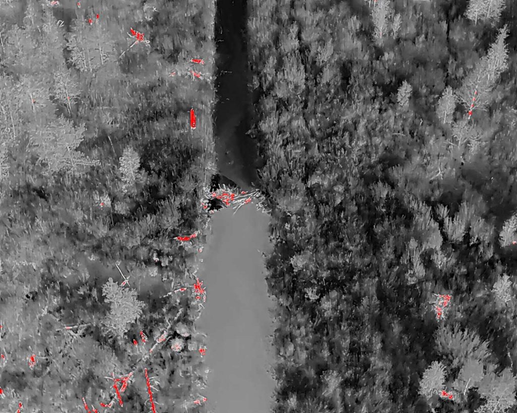 Bebri bieži izveido apmetnes un alas vietās, kur piekļūt ar kājām ir sarežģīti vai pat neiespējami – purvi, krūmāji, ļoti slapjas mežaudzes un plašāki niedrāji. Tā ir lieliska vide, kur mājot bebram, uzturot ļoti īpašu ekosistēmu. Tomēr gan medniekiem, gan mežsaimniekiem ir svarīgi zināt, vai bebraine joprojām ir apdzīvota, kāpēc grāvī pēkšņi sāk kāpt ūdens līmenis, ietekmējot saimnieciskos mežus. Savulaik neatlika nekas cits kā vien doties gar grāvi kājām un brist pa dūksti, lai saprastu, kas īsti notiek. Šobrīd pieejamās dronu un termo kameru tehnolog̀ijas ļauj ātri apsekot lielākas platības, netērējot tam nedz daudz laika, nedz riskējot ar cilvēka veselību.