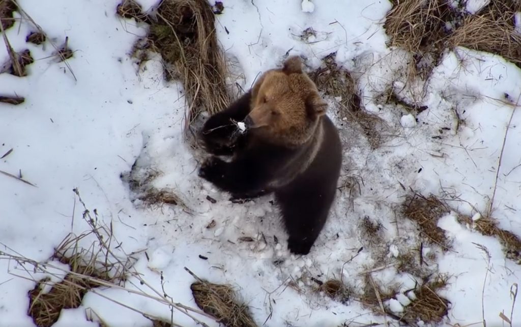Igaunijā, meklējot Tartu apkaimē pazudušu cilvēku ar dronu, mežā pamanīts ļoti atraktīvs lācis, kas tikko modies no ziemas miega.