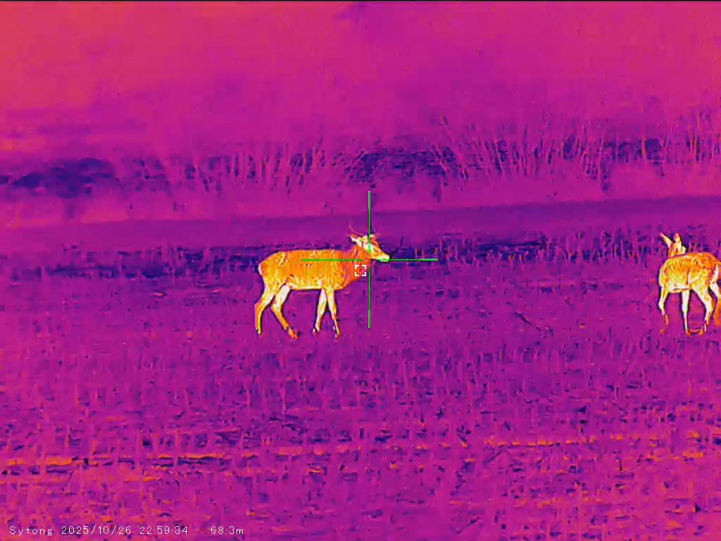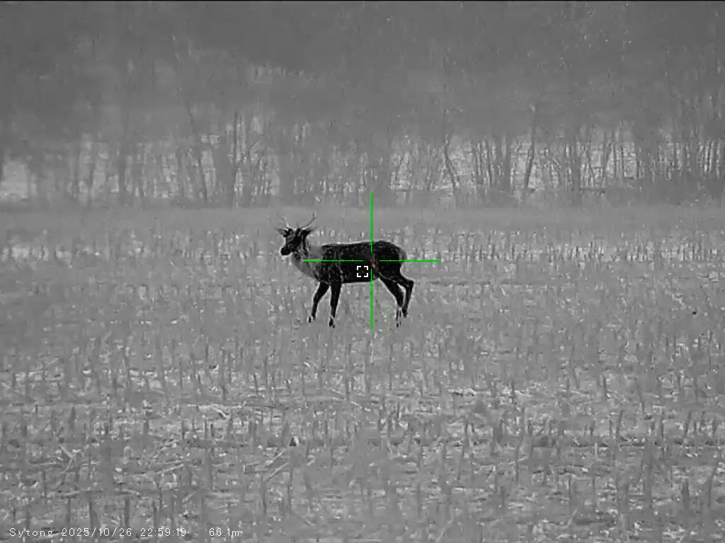 Protams, ar tēmēkli pēc piešaušanas devos medībās. Neskatoties uz termālajai ierīcei grūtiem apstākļiem – gaisa temperatūra nedaudz virs nulles un ilgstoši līst sīks lietus, ir bieza migla –, tēmēklis tomēr ļāva vērot patīkami kontrastainu attēlu. Tajā lieliski varēja saskatīt ne tikai dzīvnieku siluetus bet arī sīkākās apmatojuma nianses, kukurūzas stublājus, koku un krūmu sīkos zarus. Protams, tēmēklis gandrīz 100 metru attālumā ļāva izšķirt brieža ragus.