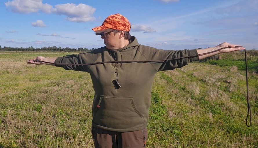 Šis jau ir nākamais līmenis. Sākumā treniņi jāorganizē vietās, kas sunim ir labi zināmas un kur nav papildu ārējo kairinātāju: piemājas parkā, ierastā pļaviņā vai sporta laukumā. Svarīgi, lai sunim nerastos vēlme skriet projām un nepildīt komandu, sajūtot, ka tas vairs nav pie pavadas. Kad suns ir palaists brīvībā, saimniekam ir jāizvēlas moments, kad tas nav īpaši aizrāvies ar kaut kādām smaržām vai savu dabisko vajadzību kārtošanu un nekas nenovērš tā uzmanību. Pirms dot komandu var suni pasaukt vārdā. Kad komanda lejā ir izskanējusi, saimniekam jāturpina mierīgi stāvēt, novirzot skatienu virs suņa vai uz sānu. Skatīšanās sunim acīs var kalpot kā signāls pienākt tuvāk. Ja suns neapguļas, saimniekam mierīgi jāpieiet pie suņa un tāpat kā sākumā jāaizved uz to vietu, kur komanda izskanēja, pašam jāatgriežas savā pozīcijā, nedaudz jāiepauzē – pietiks ar 30 sekundēm – un jādodas atpakaļ pie suņa, lai to paslavētu. Ja suns apguļas, saimnieks uzreiz dodas pie suņa, iedodod tam kārumu un komanda brīvi. Šādi vingrinājumi ir jāturpina diezgan ilgu laiku, pakāpeniski pārejot no garlaicīgām un sunim labi zināmām vietām uz pilsētas teritorijām un pēc tam medību platībās. Ir ieteicams regulāri trenēties, izmantojot svilpi, jo tās signāls ir dzirdams daudz lielākā attālumā un sarežģītākos laika apstākļos. Komanda lejā jeb down ir izmantojama, lai apturētu suni pirms atskan šāviens, piemēram, putnu medībās. No suņa spējas izpildīt šo komandu ir atkarīga tā drošība un sekmes medībās. Tāpat šo komandu var izmantot socializācijas vidē brīdī, kad suns sāk skriet pretī cilvēkiem vai citiem suņiem. Viens no būtiskākajiem ieguvumiem ir iespēja apstādināt suni bīstamās situācijās, piemēram, brīdī, kad tas, ejot pakaļ dzīvniekam, tuvojas autoceļam, pa kuru brauc automašīna. Komanda down ir viens no sarežģītākajām, jo suņi ir patstāvīgi dzīvnieki, sevišķi medību suņi, kas ir spējīgi pieņemt paši savus lēmumus. Pie tam šī komanda ir jāizpilda attālumā no saimnieka. Lai to iemācītu, ir vajadzīgi treniņi, savstarpējs kontakts starp saimnieku un suni un uzticēšanās. Sunim ir jāzina – ja saimnieks dod komandu, tad ir iemesls, kādēļ tā ir jāizpilda. Saudzējiet savus suņus, māciet tos un trenējiet paklausībā, jo arī medībās var būt dzīvības un nāves jautājums.