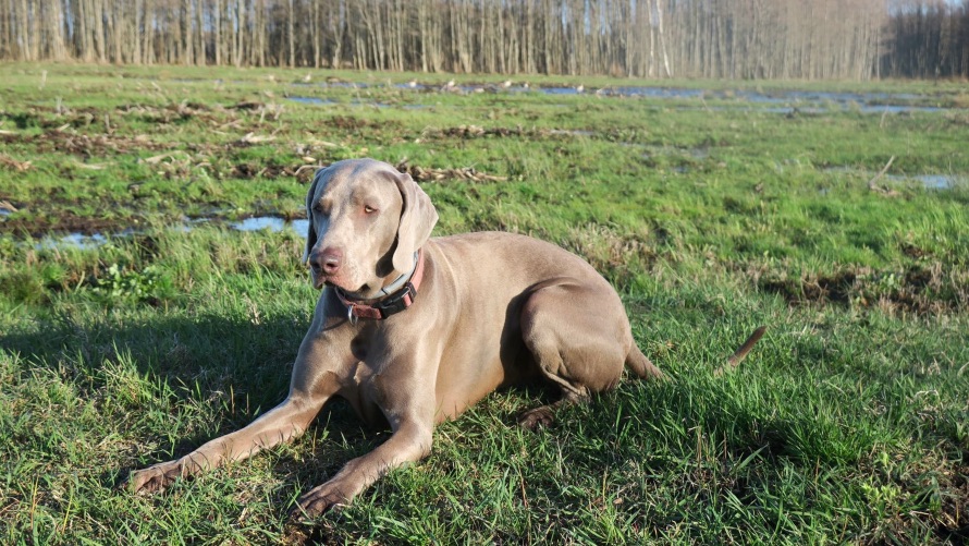 1. Nosēdinām suni sēdus pozīcijā.